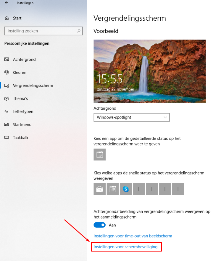 · Kies Vergrendelingsscherm
