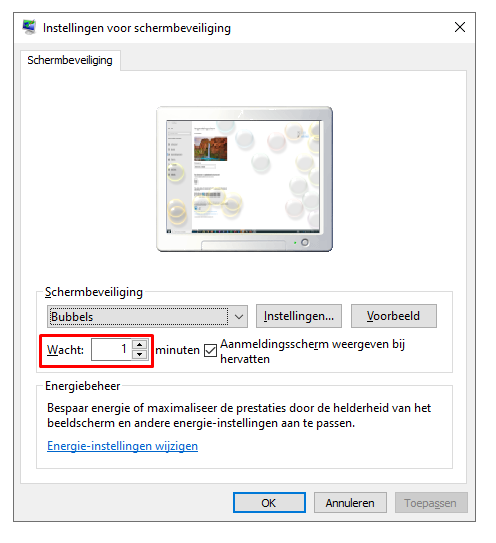 · Instellingen voor schermbeveiliging